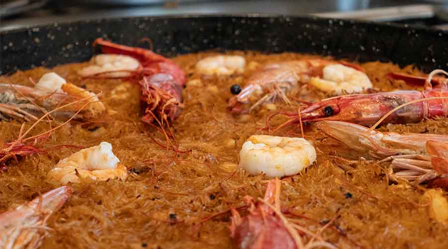 Fideuá del señorito con calamares, gambones y carabineros
